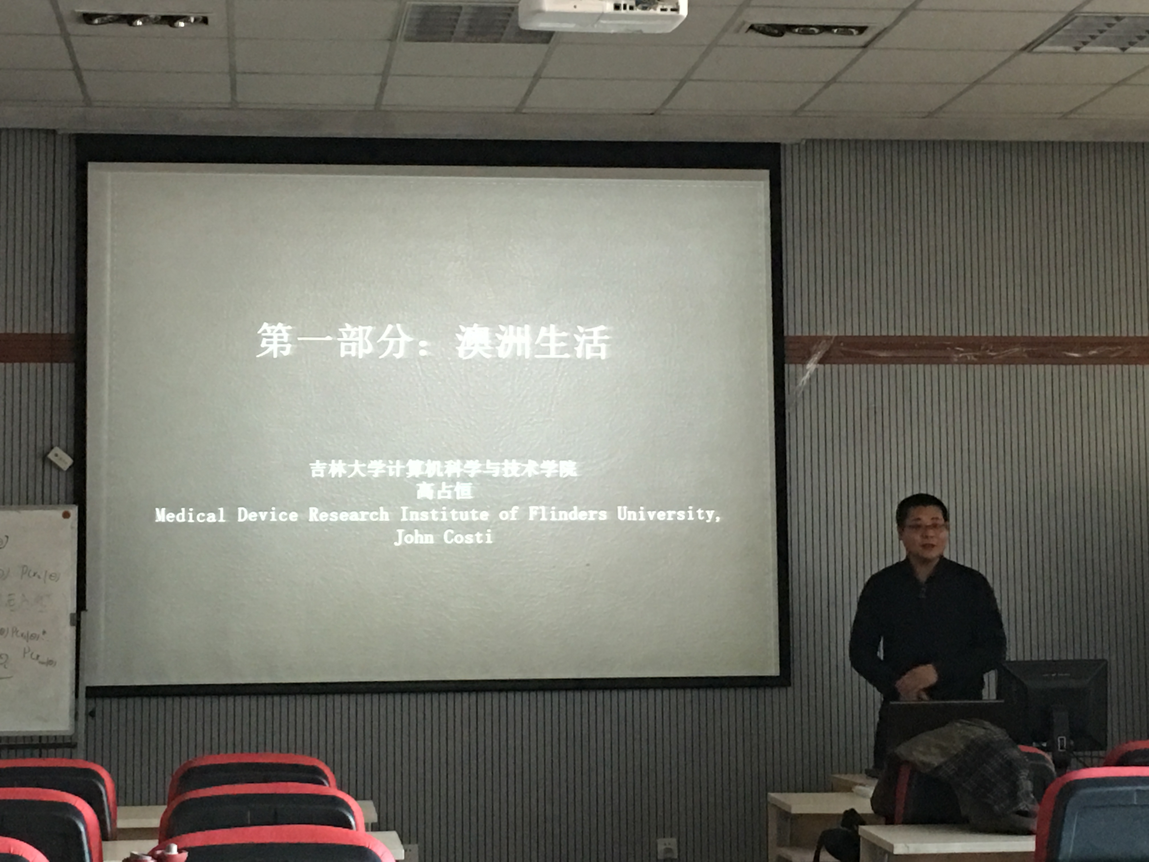 计算机学院高占恒副教授在计算机学院做了题目为“脊柱损伤测量中X射线标志物提取系统”的学术报告。报告主要介绍了高占恒副教授在澳大利亚从事访问学者期间,取得的一系列关于脊柱损伤测量中X射线标志物数字化的研究结果。报告中,高占恒副教授首先介绍了澳大利亚的工作、生活情况,然后介绍了脊柱损伤问题的定义、目前解决方案、本人在访学期间做的工作,着重介绍了其在访学期间研发的一款半自动X射线标志物数字化软件WireDig,包括软件的功能、特点,以及与原有软件相比的优势。