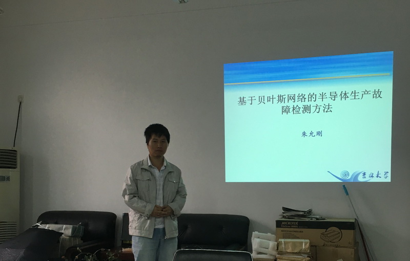 计算机学院朱允刚老师做了题为“基于贝叶斯网络的半导体生产故障检测方法”的学术报告。报告中,朱允刚老师首先介绍了贝叶斯网在半导体晶元生产故障诊断领域的应用背景,然后从模型的表示、推理及学习三方面具体介绍了为解决该问题所设计的贝叶斯网络及相关算法。在模型表示方面,设计了一个基于一阶马尔科夫假设的贝叶斯网络来表示半导体晶元生产过程中多个阶段的监测信息和故障状态之间的依赖关系;在模型推理方面,针对所设计贝叶斯网络结构的特点,给出了基于递推方式的高效推理方法,进而实现故障预测;在模型学习方面,基于EM算法从数据中学习该贝叶斯网络。