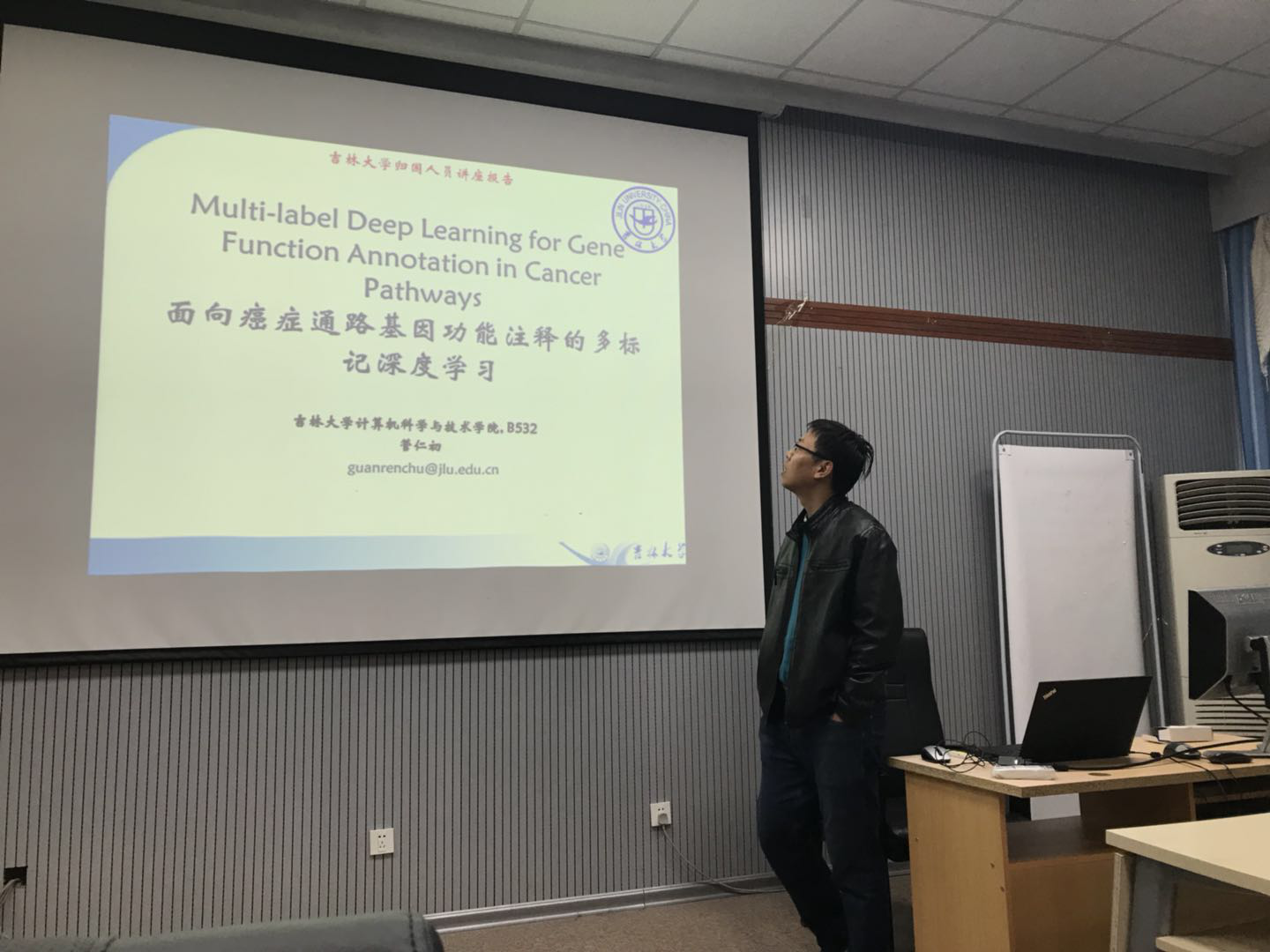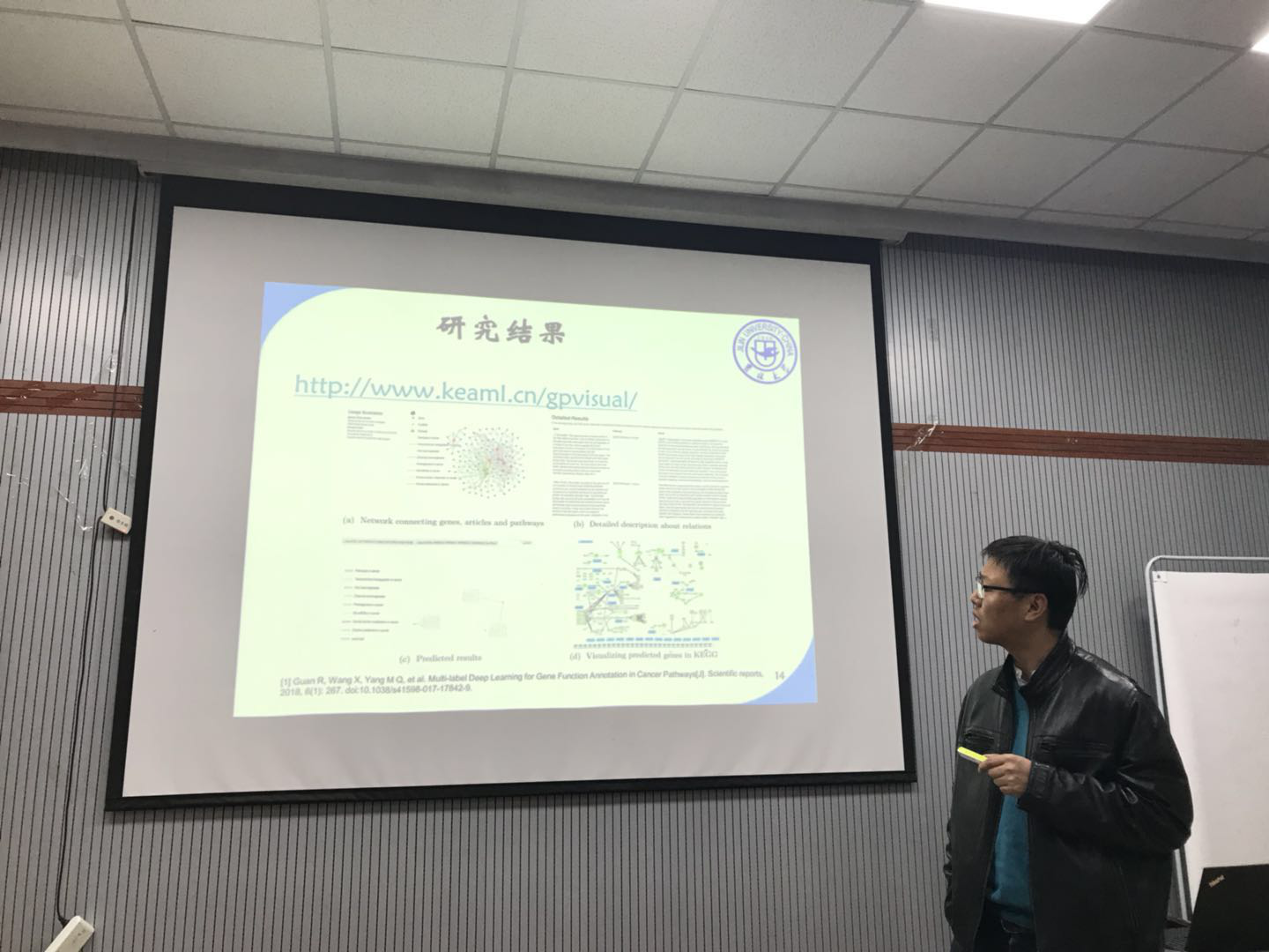 A521做了题为“Multi-label Deep Learning for Gene Function Annotation in Cancer Pathways”的学术报告。管仁初博士于2017年3月到2018年3月,在美国阿肯色大学中南生物信息中心进行博士后研究,主要研究方向为生物信息学。已发表学术论文40篇,其中包括SCI索引20篇。总引用次数420余次,其中他引390余次。学术成果多次在包括IEEE TKDE、IEEE TGRS和Remote Sensing等知名SCI索引学术期刊上发表。