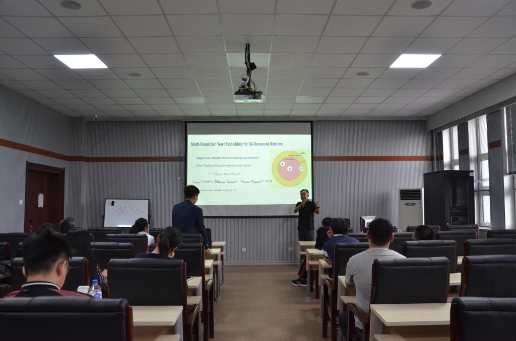 邀请,在计算机楼A521报告厅作了题为“Multi-Resolution Models for Learning Multilevel Abstract Representations of Text”的学术报告。