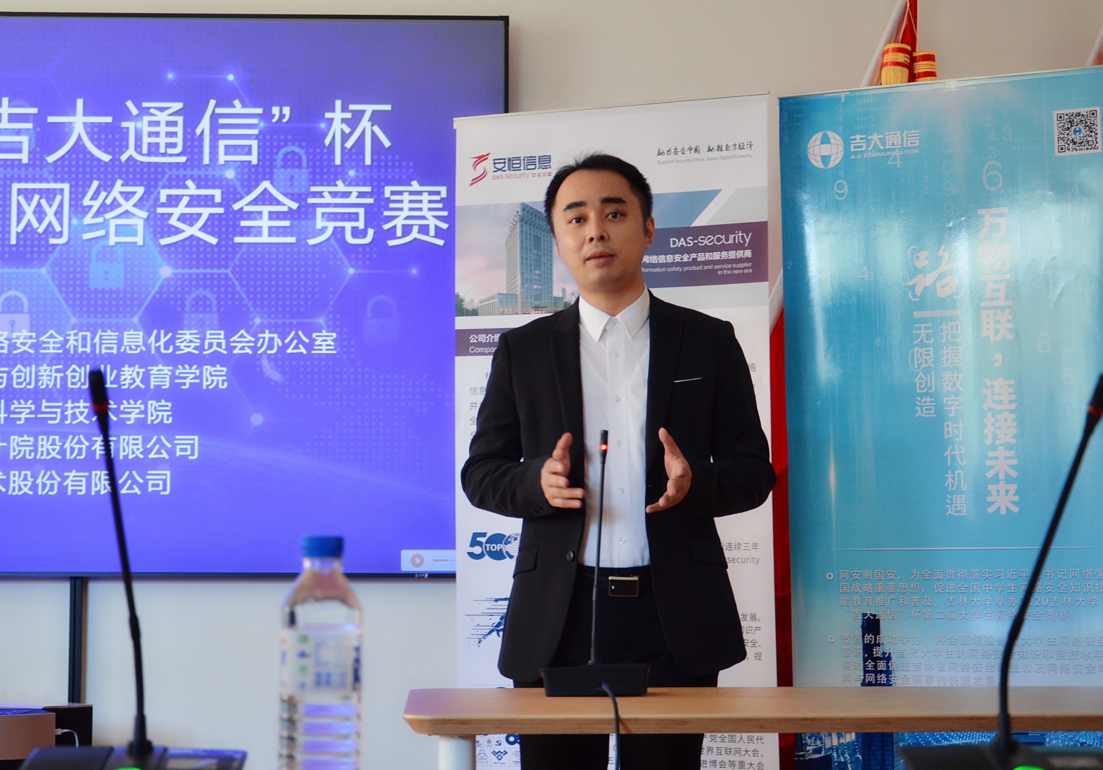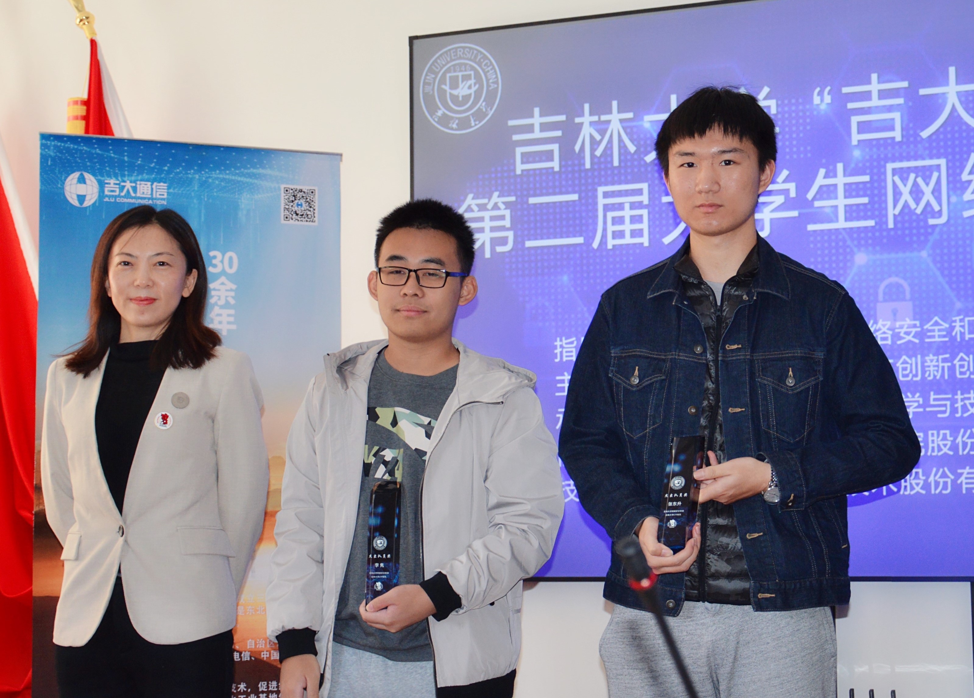 党委白江副书记,协办单位吉林吉大通信设计院股份有限公司于涛主任,技术支持单位杭州安恒信息技术股份有限公司东北区陈晖主任以及获奖学生代表和组委会人员参加了颁奖仪式。河马影视