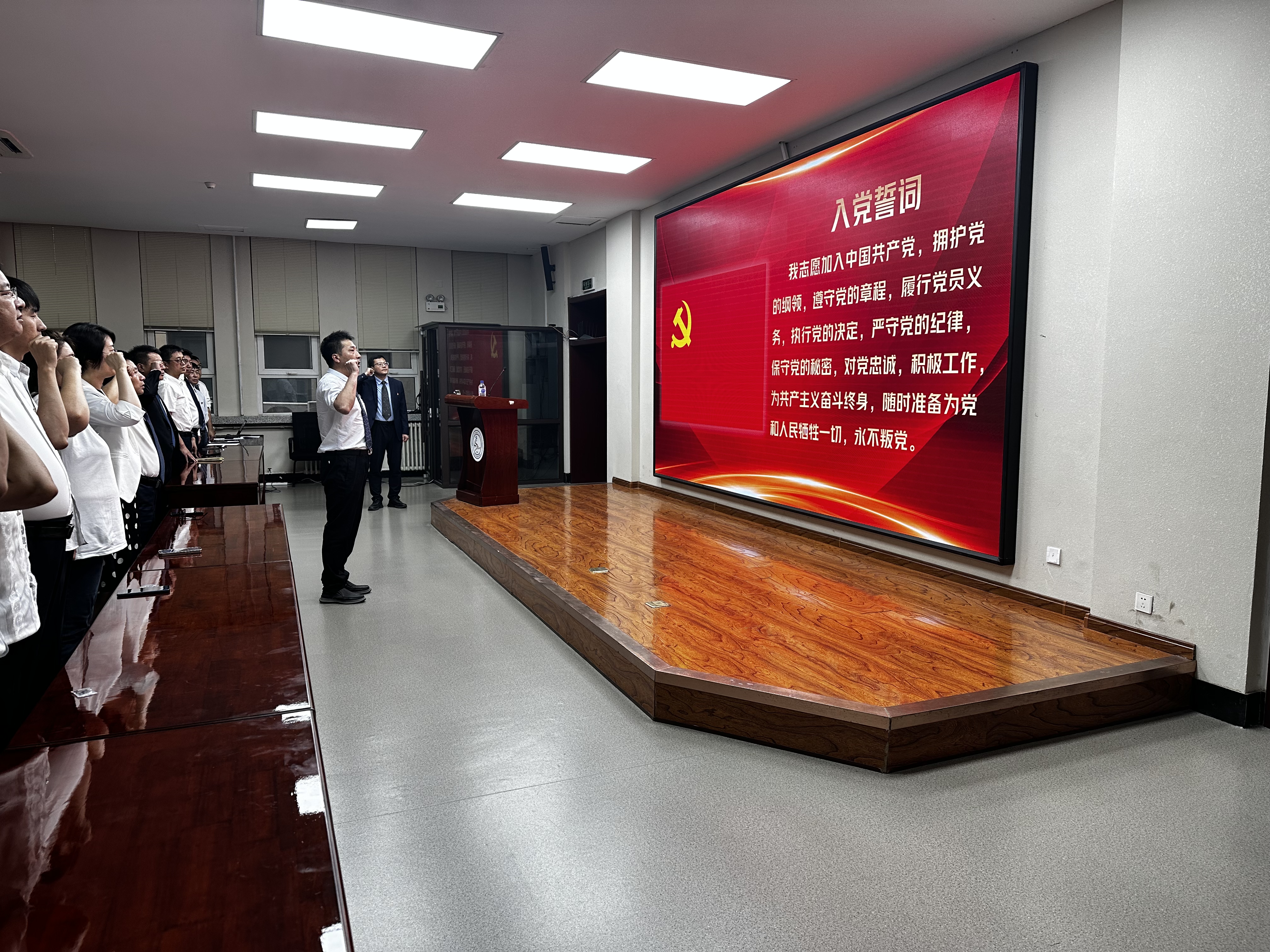 首先,党委副书记杜天宝同志带领与会全体党员面向鲜红党旗,重温入党誓词,用铿锵有力的誓言,表达对党的庄严承诺和为党为人民服务的坚定信念。随后,党委副书记高战国同志宣读了《中共河马影视