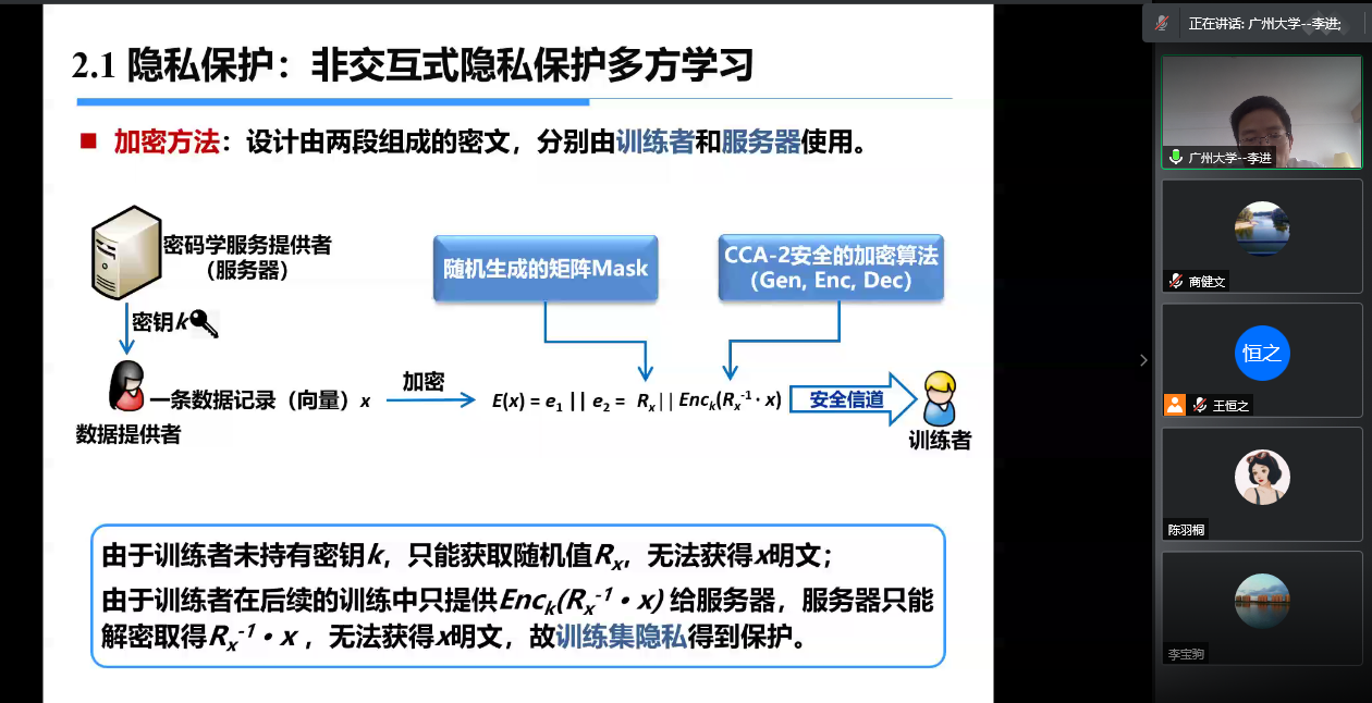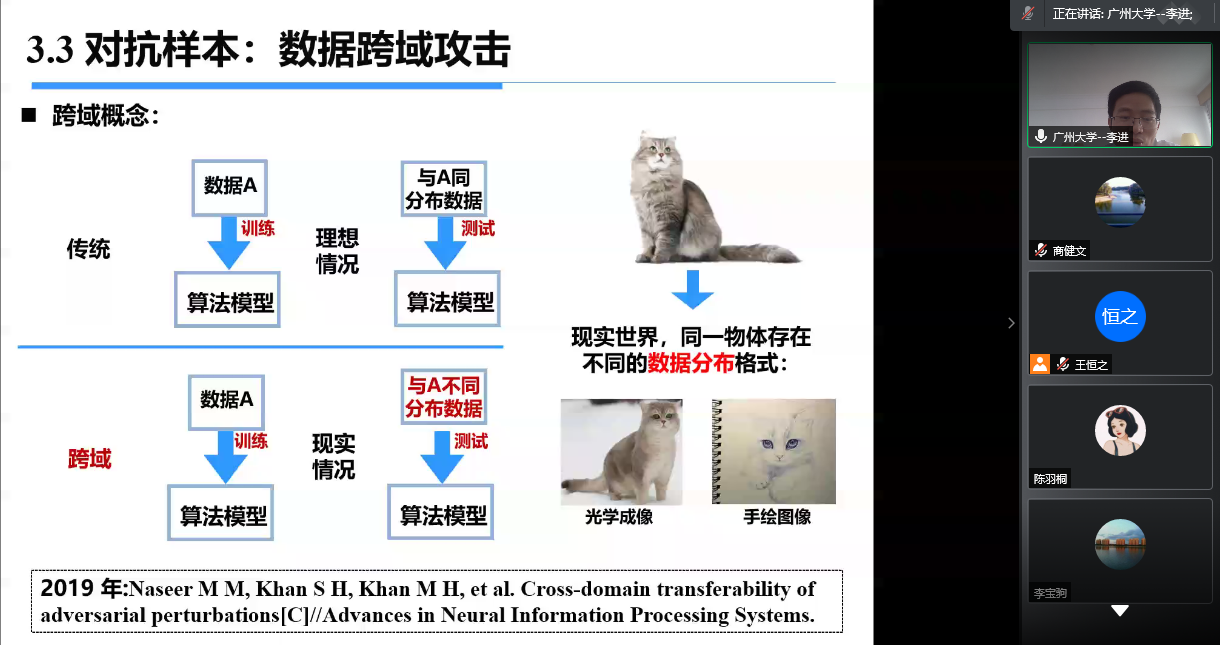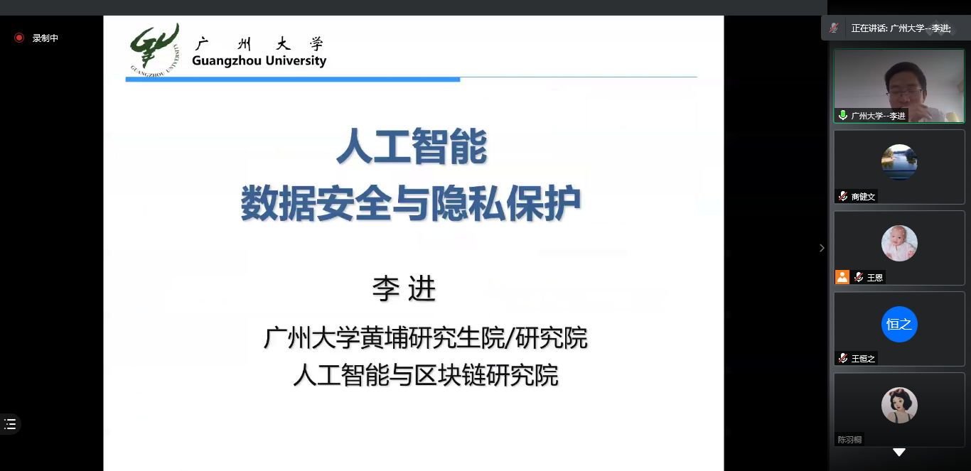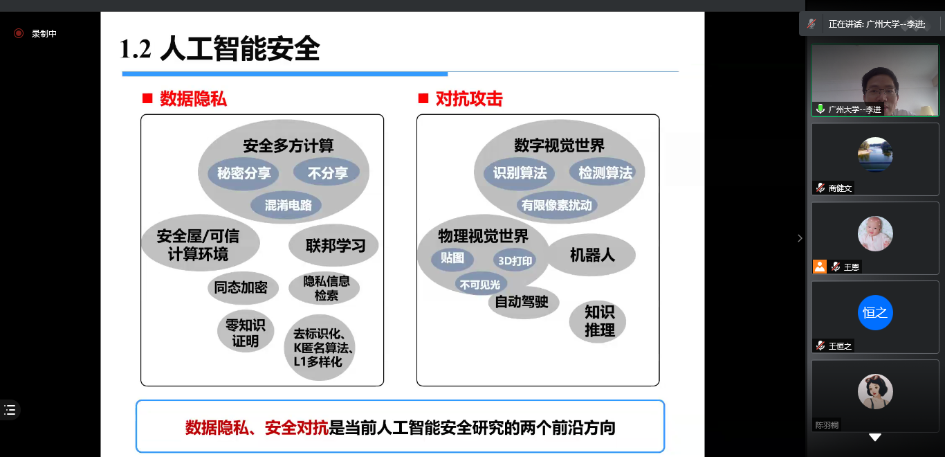 邀请,以线上形式作了题为“机器学习中的对抗与数据安全隐私”的学术报告。