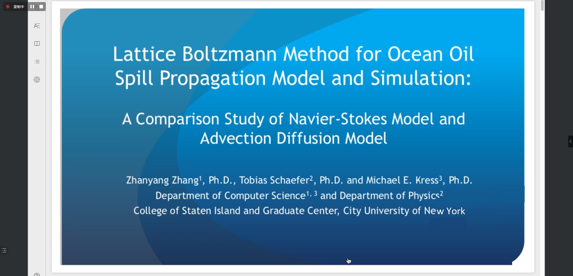 师生做了题为“Using Lattice Boltzmann Method for Ocean Oil Spill Model and Simulation”的线上学术讲座。