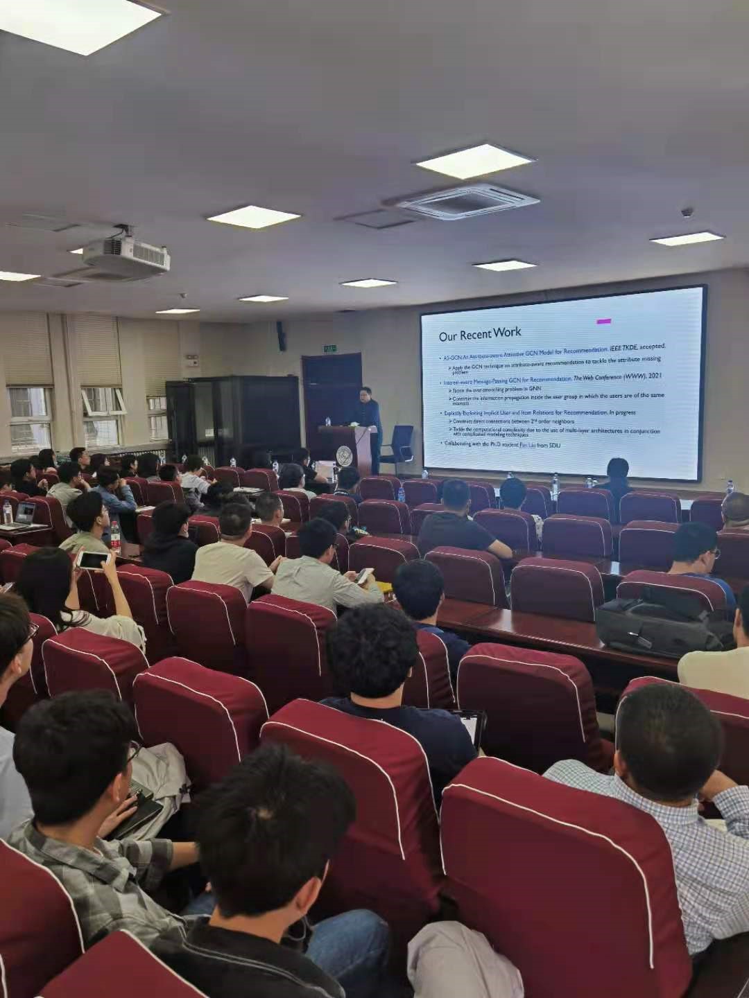 中心校区计算机楼B108做了题为“基于图卷积网络的推荐算法研究”的学术讲座。