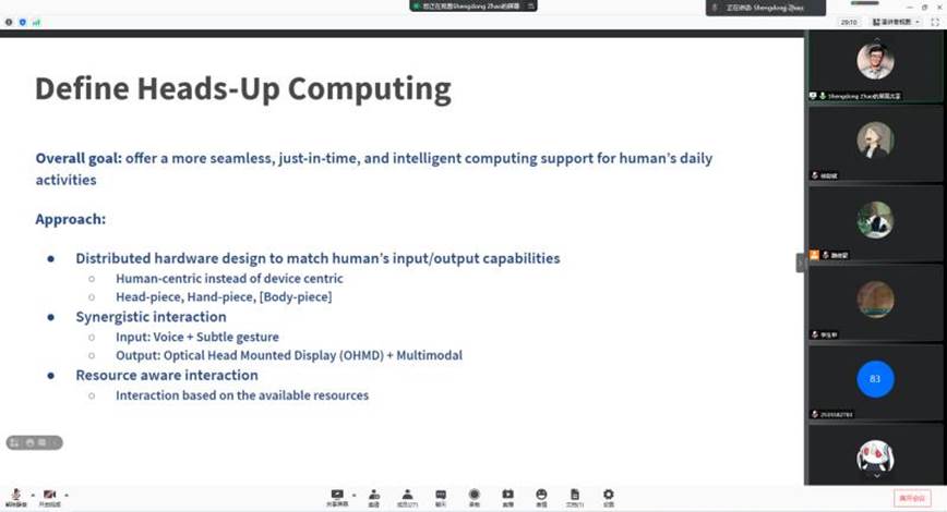 师生作了题为“Heads-Up Computing: Moving beyond the Device-Centered Paradigm”的线上学术讲座。