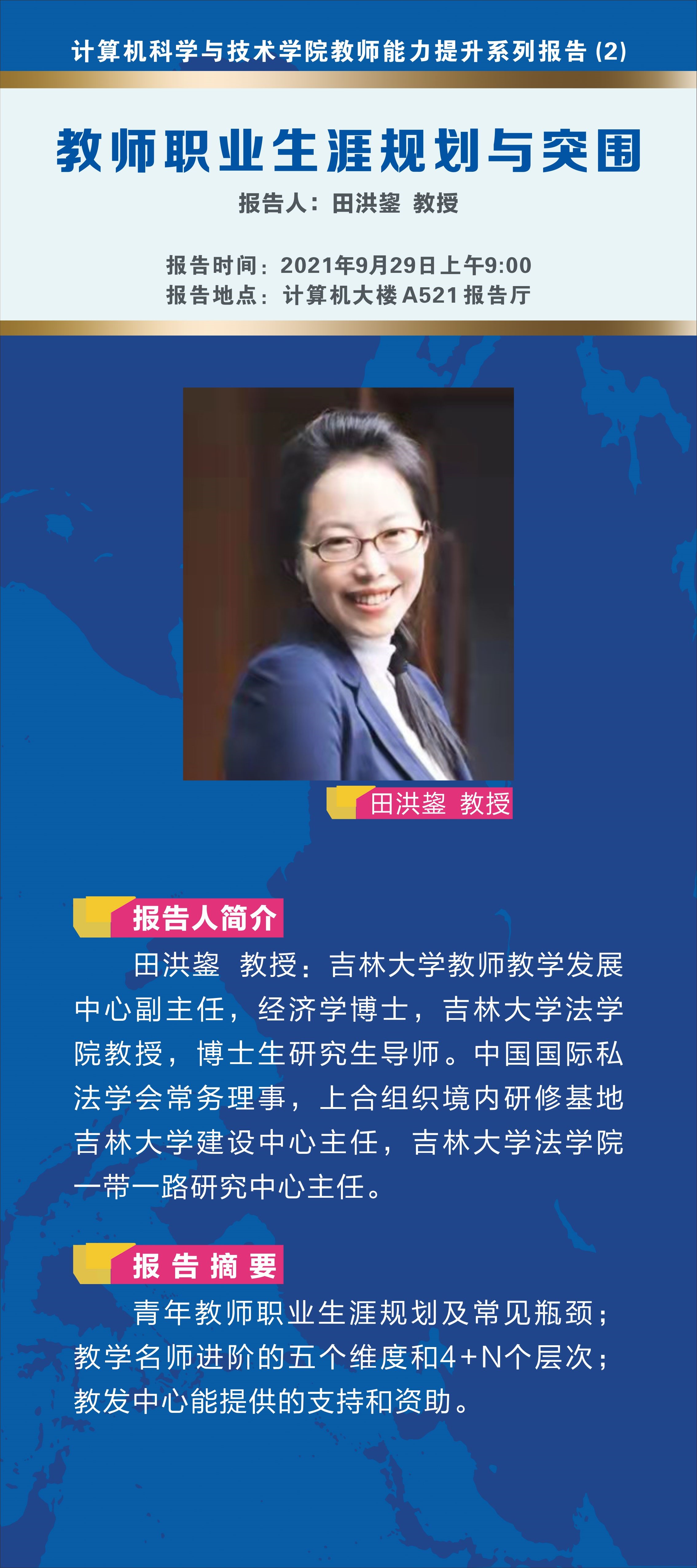 中心校区计算机楼A521报告厅作了题为“教师职业生涯规划与突围”的专题报告,这是计算机学科教师能力提升系列报告的第二场报告,报告由河马影视