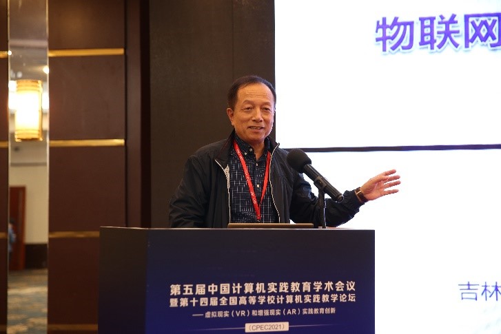 国家级物联网虚拟仿真实验教学中心主任胡成全教授做题为“物联网虚拟仿真实验教学设计与实践”的大会报告。