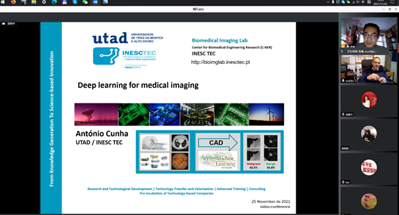 报告由张睿副教授主持,共分为三个部分。首先,库尼亚教授科普了关于机器学习的基本原理和方法;其次,库尼亚教授延伸了人工智能研究的热点方向——可解释人工智能;最后,库尼亚教授对于葡萄牙INESC TEC研究机构在医学图像领域的应用进展。报告后,学院师生和库尼亚教授进行了深入交流,约定今后在可解释人工智能方向展开进一步合作,取得了预期的效果。
