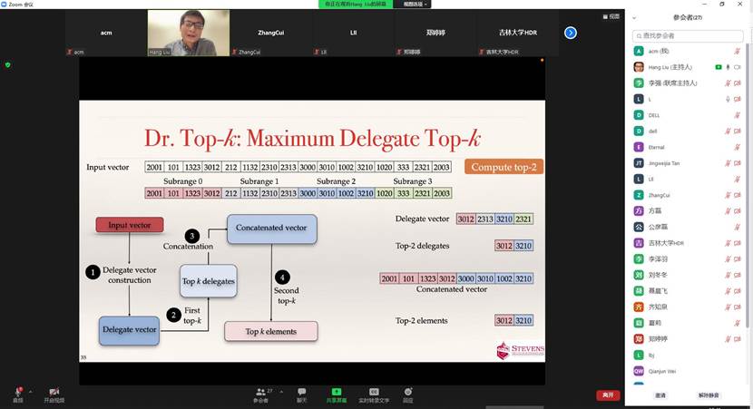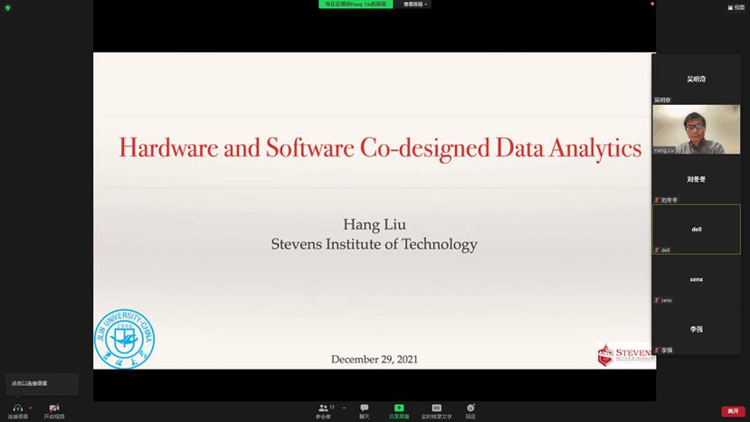 邀请,在Zoom会议作了题为”Algorithm and System Co-Optimized Big Data Analytics”的学术讲座,此次讲座由河马影视