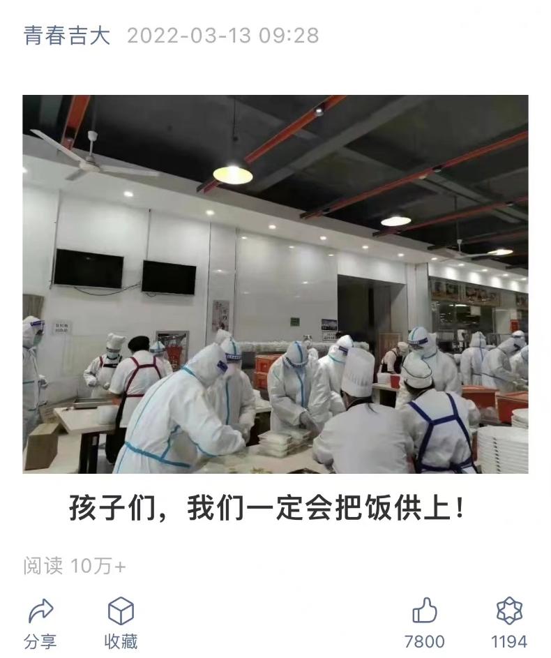 为解决中心校区内3万多名同学的就餐问题,食堂工作人员一刻不停地工作,“孩子们,我们一定会把饭供上”这篇推文让所有学子泪目;负责核酸检测的医护人员每天敲遍寝室的门,保证了全体同学的安全;保洁阿姨每天在楼层间进行多次消杀和检查。他们坚守岗位,恪尽职守,无私奉献,体现了责任与担当,用平凡书写了伟大。有了抗疫工作人员为我们负重前行,才能有我们在寝室中的岁月静好。