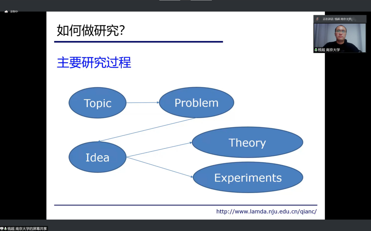 (线上特别版)暨《论文写作指导》课程第三讲顺利进行,活动采取腾讯会议和线上直播两种方式,包容更多师生参与到学术讨论中来。本期邀请了南京大学人工智能学院副教授、博士生导师钱超老师,老师以 “基于多目标演化算法的子集选择问题求解”为题,为同学们开展了一场论文写作经验分享专题讲座。