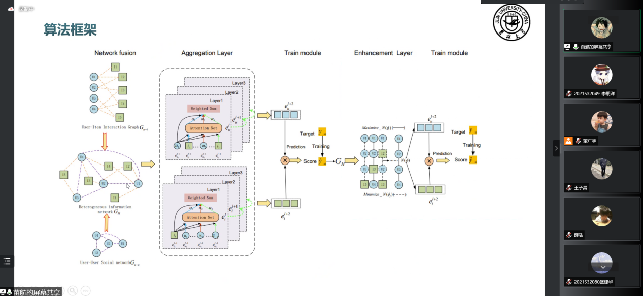 本期邀请了2019级硕士生苗航和张梦玺进行学术分享。他们分享的主题分别是“推荐系统”和“Github社区信息挖掘”。本次沙龙活动旨在通过学术分享,拓宽研究生学术视野,促进同学之间的科研交流。活动由河马影视