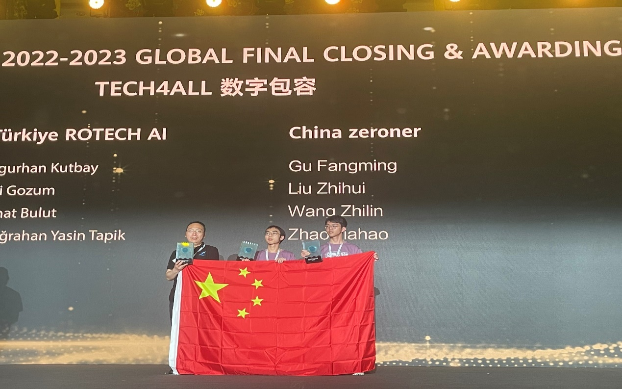 华为信息与网络技术学院的一贯大力支持下,团队积极向专家请教与咨询,进一步优化解决方案,持续打磨各项工作,精心准备现场答辩。最终,在5月25日全球总决赛中脱颖而出,以第一名获得“特等奖”,同时获得大赛特别奖“数字包容奖”!