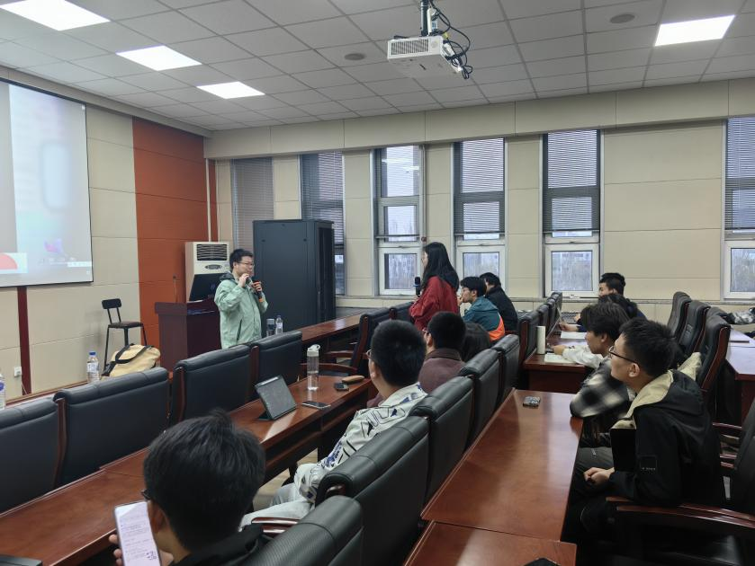 报告开始前,余子濠博士和同学们针对开源芯片、“一生一芯”人才培养计划等问题进行了交流。