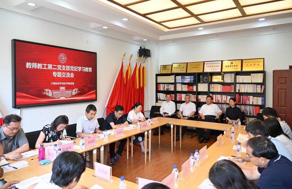 教师教工第二党支部党纪学习教育专题学习交流会,并与大家亲切交流,认真听取他们在党纪学习教育、人才培养、学院面临机遇挑战和未来发展等方面的意见建议,并对学院抓好“工科集群建设”,本科教学审核评估和假期前后安全稳定工作提出要求。姜治莹指出,纪律严明是我们党的光荣传统和独特优势,开展党纪学习教育是推动全面从严治党向纵深发展的重要举措,要持续抓好重点任务和关键环节,以更高标准、更严要求、更细举措、更实作风,高质量开展党纪学习教育。希望学院加强人才引育,强化平台建设,发挥学科优势,推动学科交叉,努力为工科集群建设,探索新路、再立新功。