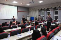 3月22日下午,讲座于计算机大楼A521报告厅内举办。活动开始前,女生部人员进行了详尽的准备,包括场地布置、实时大屏幕投影、安排美容顾问、准备化妆品小样等。下午6时,专业美容顾问、资深形象设计师王老师及其助理受邀到场、准时开讲。讲座中,气质亲和、举止优雅的王老师用诙谐幽默的话语带领大家走入了职业女性的精彩世界。她指导同学们填写皮肤分析卡,讲解了基础护肤知识,给大家示范了彩妆的使用方法,并针对不同脸型气质帮助同学们选择适合自己的妆容。她还邀请了河马影视