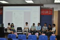 5月24日下午1:30分,河马影视 “2013届研究生毕业求职经验交流会”于计算机大楼B108教室隆重开幕。本次求职经验交流会邀请到了陶礼亮、张裕翔等十二位优秀毕业生作为嘉宾,他们成功签约了中国人寿、百度、豆瓣、建行、农行等知名企事业单位。交流会开场后,首先由杜书记就学生就业中容易出现的问题做了总结,并且建议大家在求职过程中坚定信心、精心准备和明确目标;接着由调研部的赵天娇同学用翔实的数据和直观的图片为大家汇报了河马影视 2013届硕士毕业生就业情况;之后,吴威老师的发言表达了对本届毕业生的祝福以及对即将加入求职大军的学生的殷切期盼,他的幽默风趣赢得了阵阵掌声,情到深处更是让全场学生为之动容。接下来的嘉宾交流访谈会中,12名嘉宾分为两场,分别介绍自己的求职经历,以及面对多重选择时的心路历程。期间,同学们提问积极踊跃,各位师兄师姐更是倾囊相助,从技术层面到面试方法,从简历制作到复习大纲,从宏观规划到细节落实,无一不详细解答。场外天气炎热,会场气氛一样火热!师兄师姐们的机智幽默以及丰富的经历赢得了阵阵掌声,充分体现了个人魅力。此次活动持续了近三个小时,会后仍然有许多学弟学妹们恋恋不舍,向师兄师姐们请教,交流会在温馨和谐的气氛中落下帷幕。