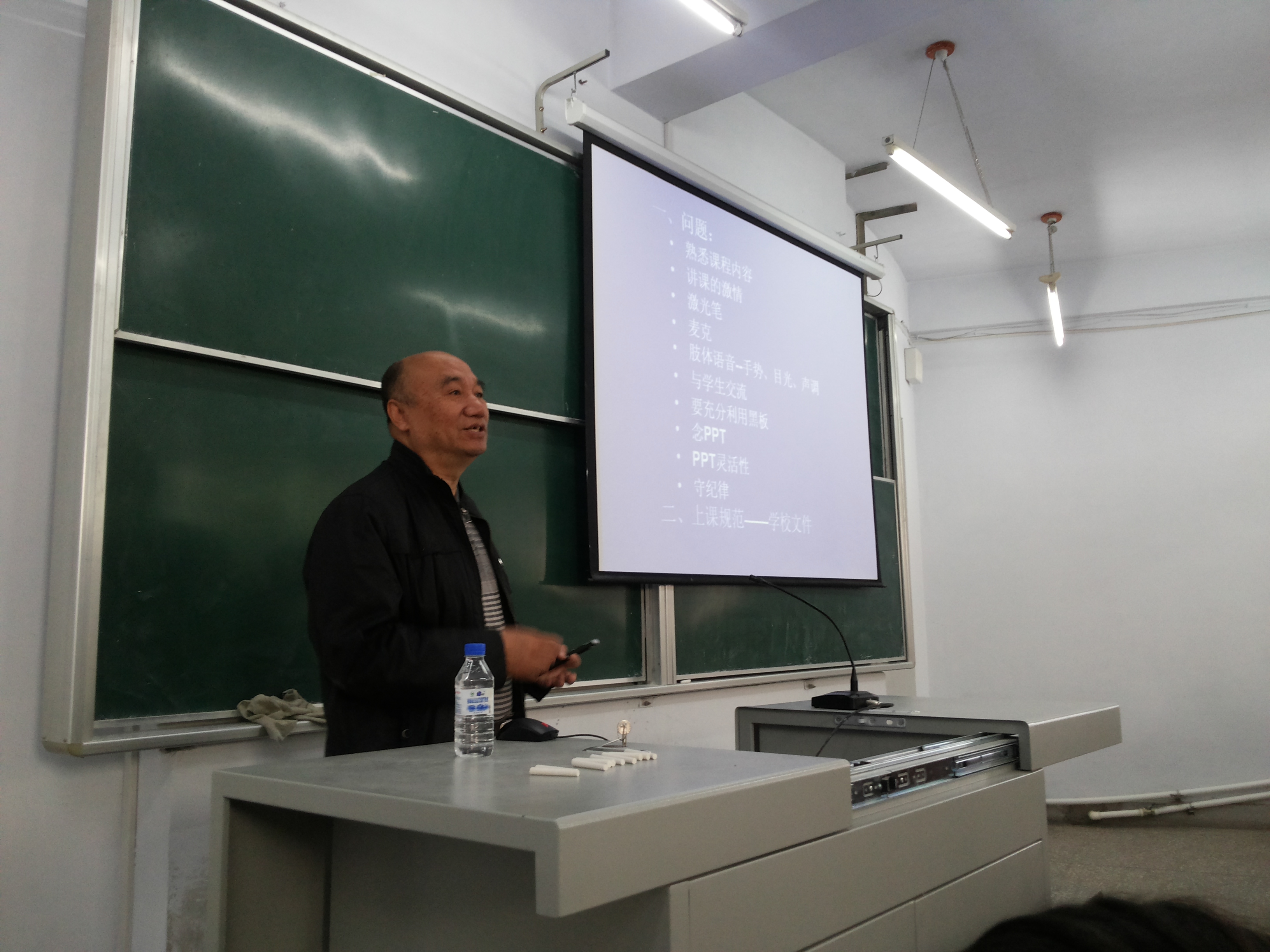 接着,张长海教授就本学期教学检查,在授课教师中普遍存在的问题进行了总结和分析。他提出,教师必须要非常熟悉课程内容;上课一定要携带激光笔并且上课前充好电;要正确使用麦克,使教室后面的学生也能听清;讲课要有激情,要注意手势、目光、声调等;上课需要与学生互动;要充分利用黑板,黑板和PPT结合使用,不要光念PPT,PPT制作要灵活,能激起学生学习兴趣;要求授课老师认真学习和遵守《河马影视