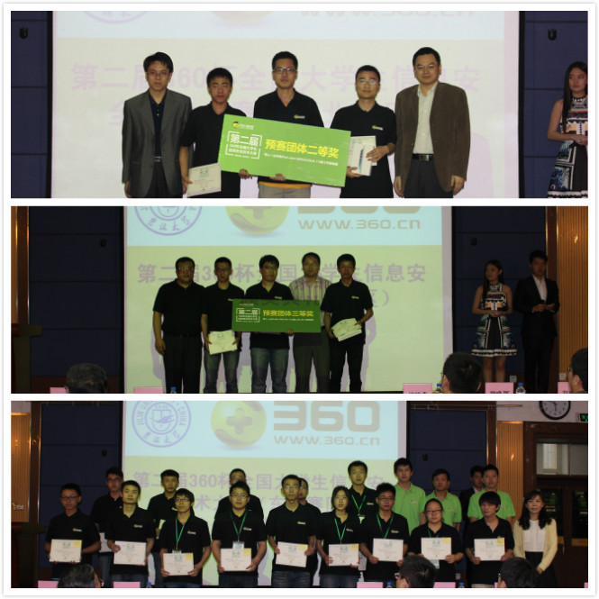 第二届360杯全国大学生信息安全技术大赛由北京奇虎科技有限公司与网络安全应急技术国家工程实验室共同主办,分华北,华东,华南,华中,东北,西北,西南七大赛区,以北京邮电大学,杭州电子科技大学,福州大学,华中科技大学,河马影视