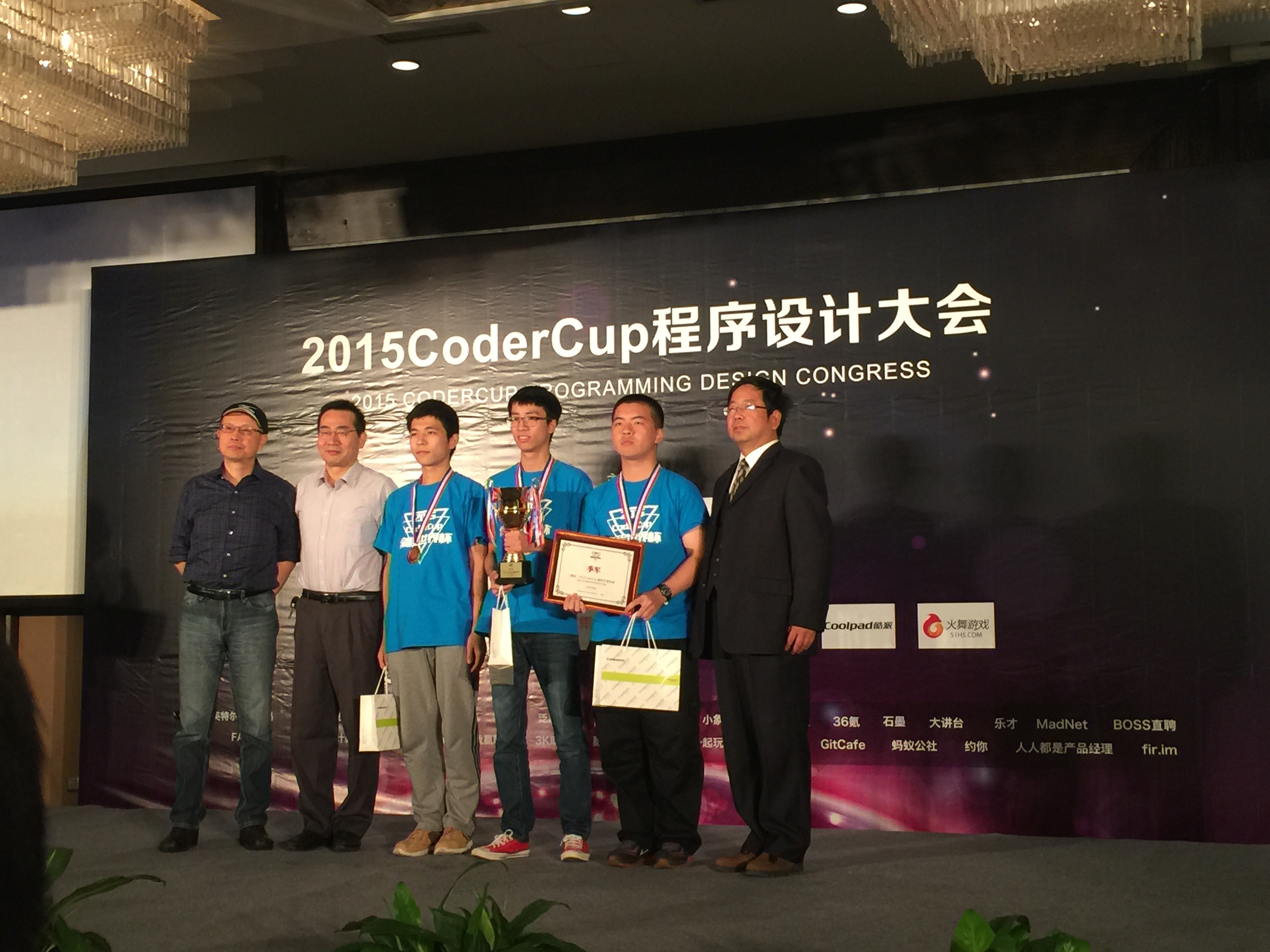 2015 CoderCup 编程大赛(简称 CoderCup //www.saikr.com/codercup)是由中国科学院大学计算机与控制学院和大学生赛事社区“赛氪网”联合主办的一项面向国内外的程序设计大赛。大赛得到了微软、阿里巴巴、BearyChat、慕课网、酷派和火舞游戏的赞助。