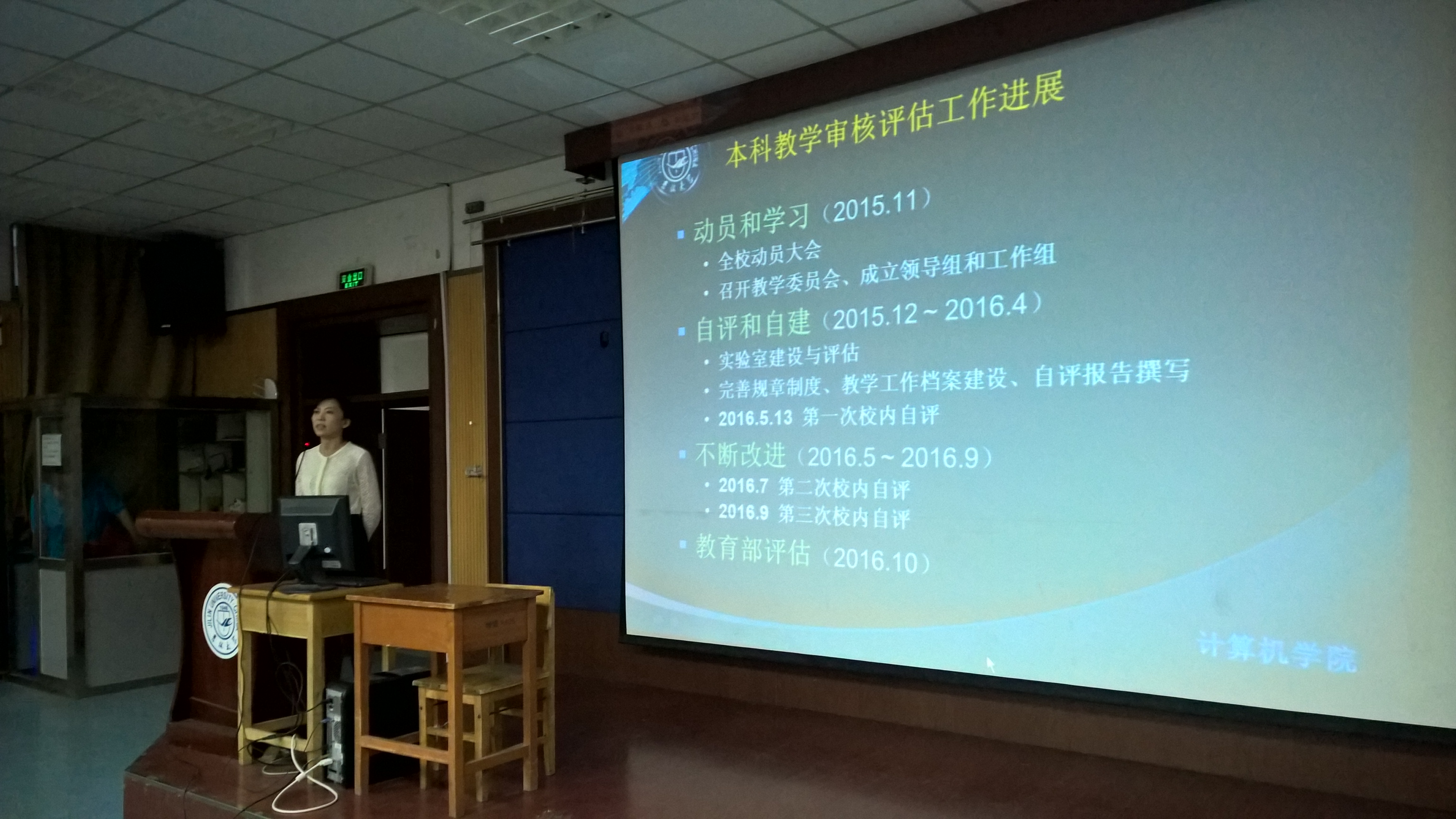 教学副院长黄岚教授主持会议并发表了讲话,百余位计算机学院一线教师参加了会议。