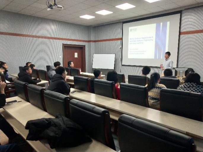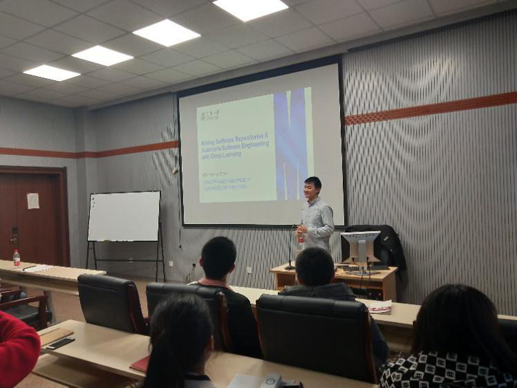 计算机楼A521做了题为:“Mining Software Repositories & Automated Software Engineering with Deep Learning”的讲座报道。陈春阳老师博士毕业于新加坡南洋理工大学,师从邢振昌老师和刘扬老师。博士在读至今,陈老师积累了丰富的研究经验,其主要研究方向为:挖掘软件仓库、文本挖掘、深度学习以及人机交互。在多年的研究经历中,陈老师十多篇论文被国际顶级会议录用,且2016年的论文Similar Tech被ASE评为Best Tool Model,同年另一篇论文被SANER评为当年的Best Research Paper。今年,陈老师的论文Deep Gauge又荣获ACM SIGSOFT杰出论文奖。