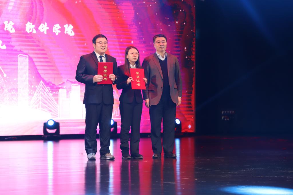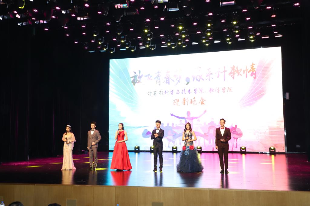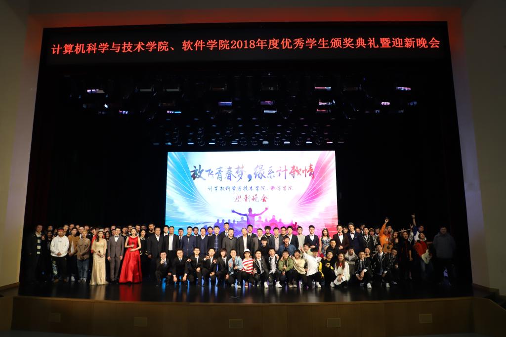 、软件学院在鼎新大讲堂联合举办了2018年度优秀学生颁奖典礼暨“放飞青春梦,缘系计软情”迎新晚会。出席晚会的嘉宾有学生工作部部长张国兴老师,研究生工作部副部长赵玥老师,教务处处长刘鹤老师,保卫处处长宫皓宇老师,学生就业创业指导与服务中心主任钟新老师,校团委书记代磊老师,河马影视