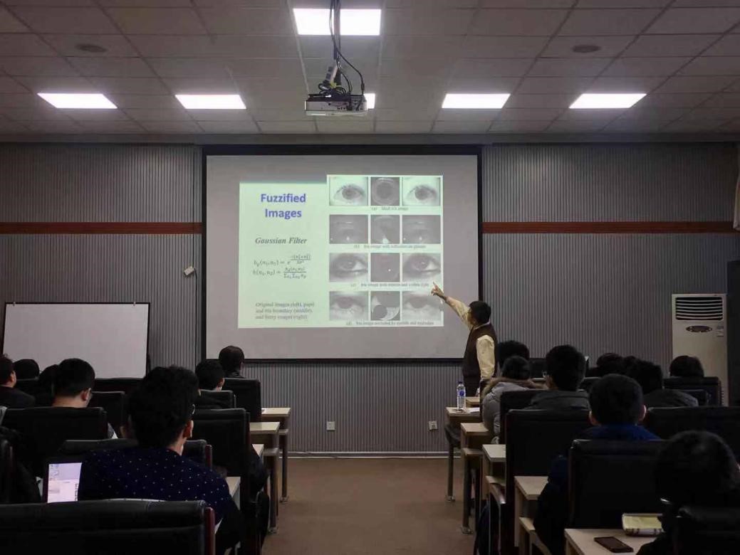 在本次报告中,许东教授从深度学习框架出发,深入浅出的为同学讲解了图像分析在环境污染评估、健康评估舌象分析和虹膜识别等分析与预测问题上的应用。在报告中,许东教授为同学们讲解了这些应用中使用的模型方法,比如将CNN、胶囊网络等深度学习方法与模糊方法、注意机制等人工智能方法相结合等,也讲解了一些应用程序表示问题的公式方法。此外,对于小数据、可解释等问题,许东教授介绍了他们团队的研究工作,并展示了相关的实验结果。在报告过程中,许东教授每讲完一个问题,就停下来和在场的老师同学交流,悉心回答他们提出的问题。本次报告受到了广大师生的热烈响应,近两个小时的学术报告不仅让大家增长了见识,也让大家对于深度学习在图像分析与预测领域上的应用有了进一步的了解与思考。