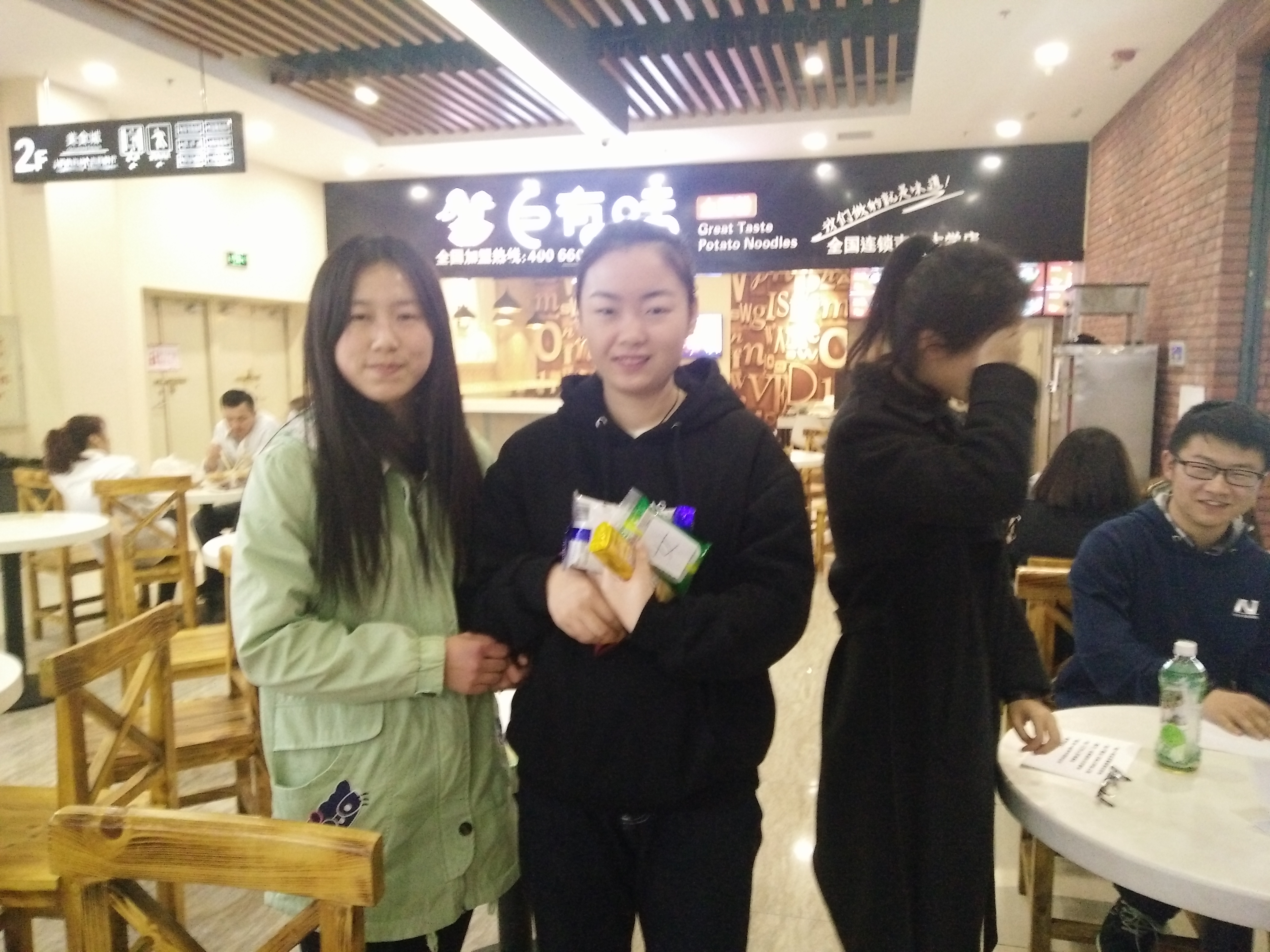 本次活动的起始地点为青湖。3时,主持人开始讲解活动的具体内容。同学们需要到日新楼,莘子园,新食堂三个地点,找到具有特征的工作人员,并且对上相应的暗号,完成工作人员指定的任务,方可获得带有汉字的零食。不同地点的人员有的字不同。只有集齐“女”“生”“节”“快”“乐”“!”这六种字并且回到起点,才算完成任务。