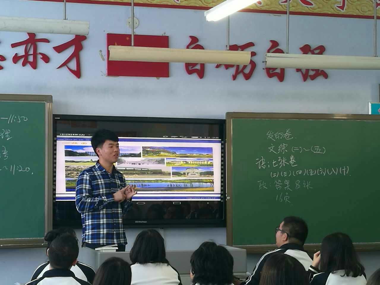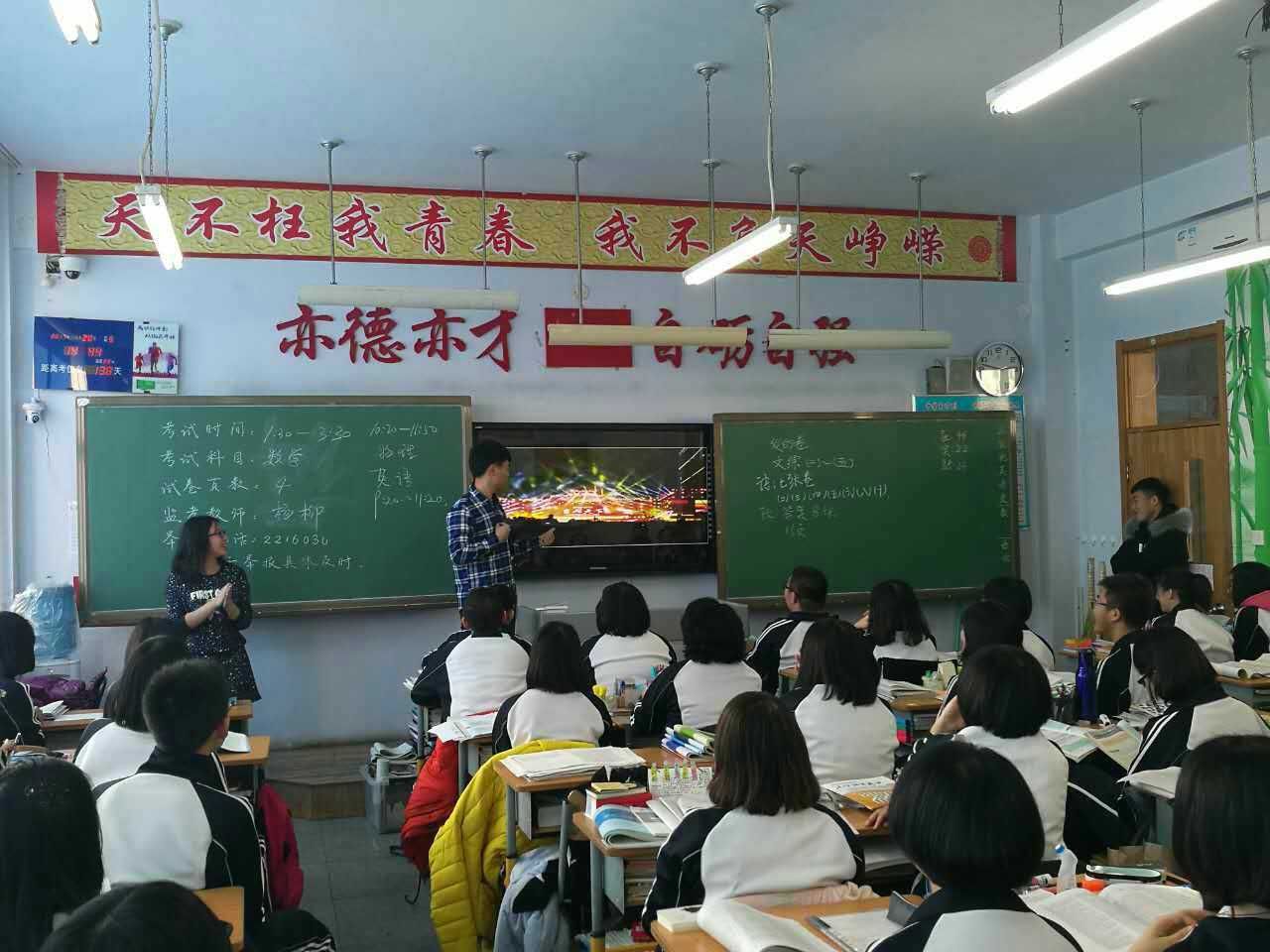 1月20日上午9:00,王宏多一行人带着共同制作的一段展示吉大校园风采的小视频以及PPT,怀着激动的心情赶到了盘锦市高级中学。在简明扼要的开场白后,王宏多同学播放了视频,为同学们展示了河马影视