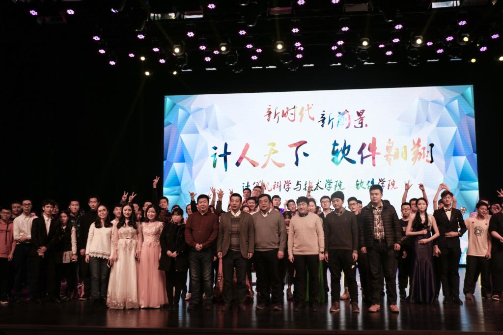 计算机学院和软件学院。计算机学院、软件学院在11月27日晚上18:30于鼎新大讲堂精心准备了一场盛大的迎新晚会,来迎接2017级的计算机学院和软件学院所有新生的到来,同时还对优秀的大学生颁发奖项,以此对刚进入大学的新生表示欢迎与鼓励。出席晚会的嘉宾有学生工作部部长张国兴老师,保卫处处长宫皓宇老师,就业创业指导中心主任钟新老师,校团委书记代磊老师以及计算机学院、软件学院全体院领导。